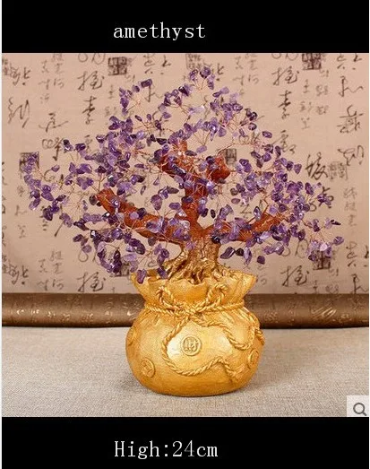 Lucky tree Holiday gifts natural amethyst quartz crystal gem money tree in for wealth money bay
