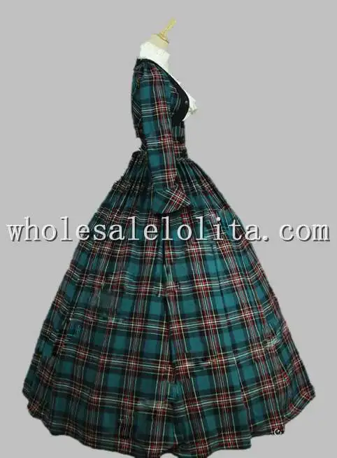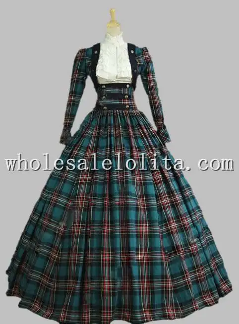 Review Victorian Civil War 3-pc Classic Tartan Period Dress Ball Gown Reenactment Theatre Clothing